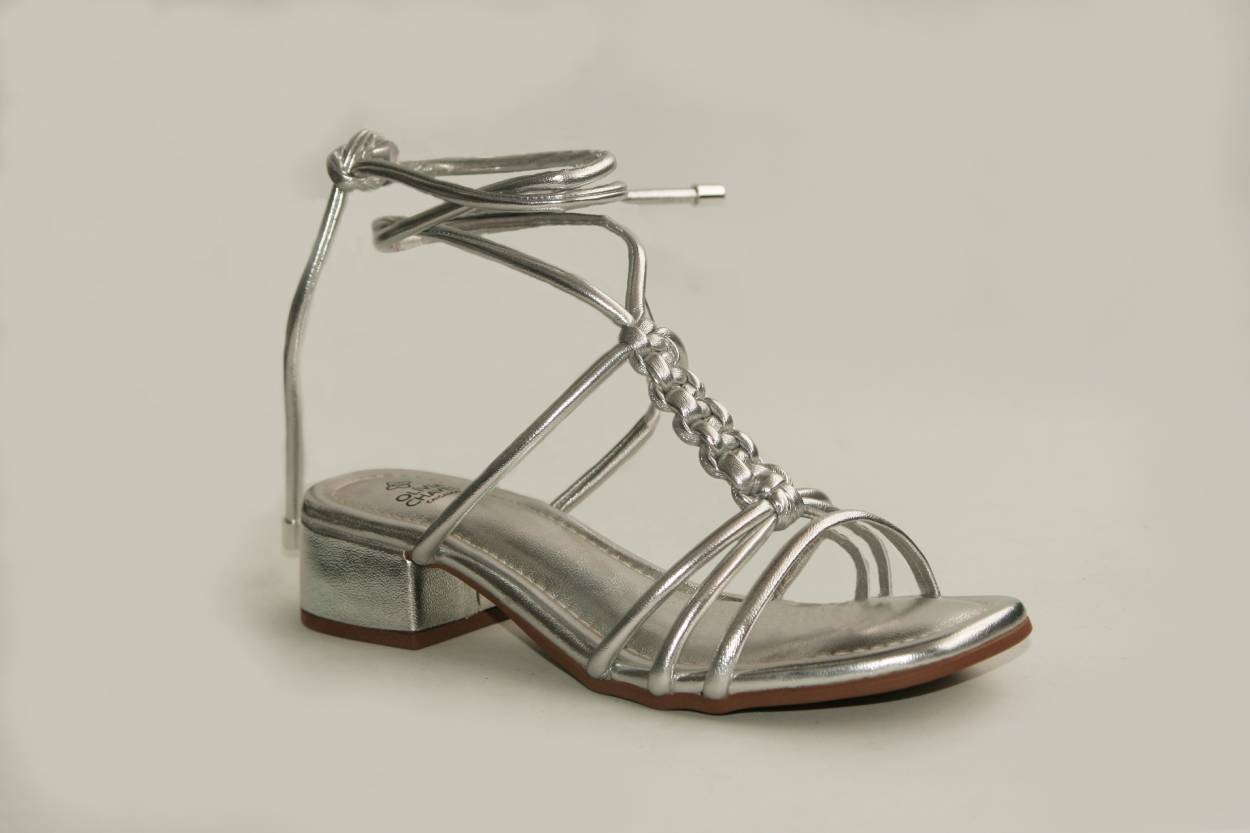 A Sandália Olivia Chaves é a escolha perfeita para quem busca um visual moderno e elegante. Confeccionada em material sintético metalizado na cor prata, traz tiras finas entrelaçadas que garantem charme e sofisticação ao modelo.